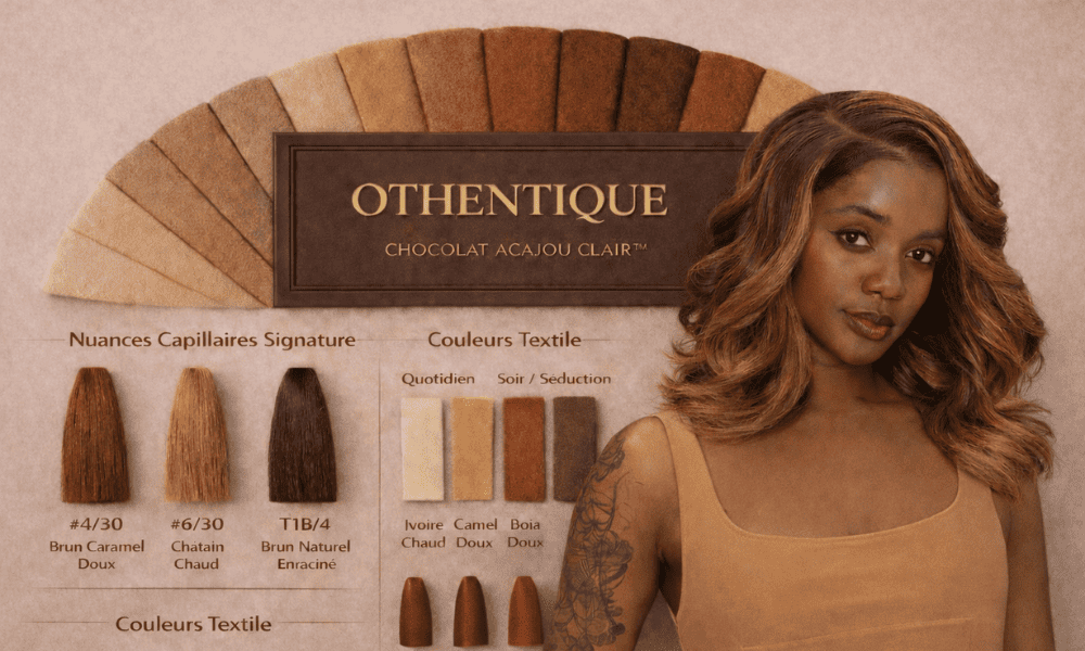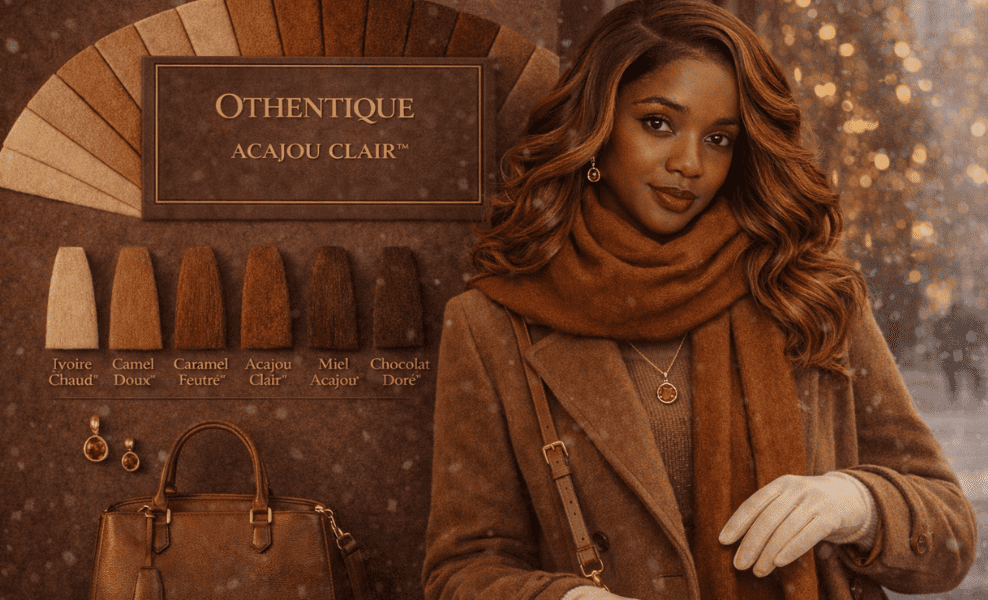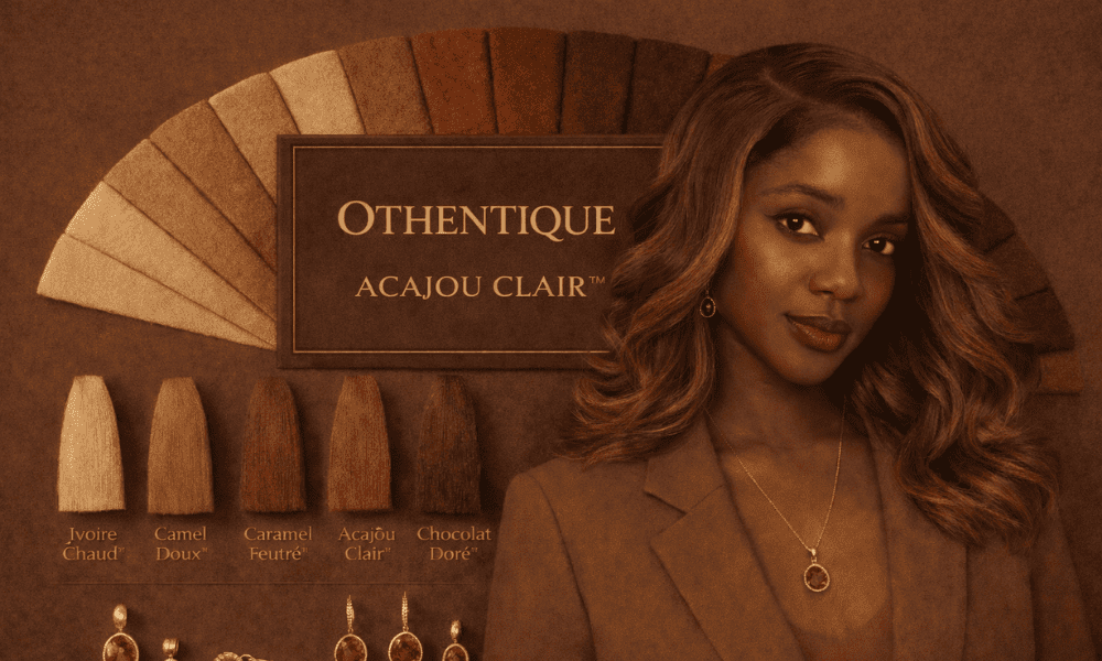 Découvrez la palette Chocolat Acajou Clair™ : couleurs de vêtements, nuances de cheveux, bijoux et matières qui subliment une peau noire à sous-ton rouge-acajou. Guide OTHENTIQUE.