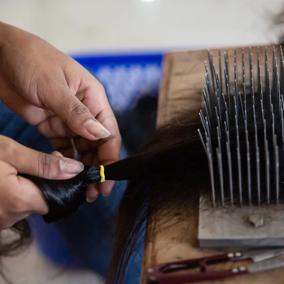 - Le Tri : Les mèches sont alignées de la racine à la pointe, préservant ainsi le sens des cuticules.